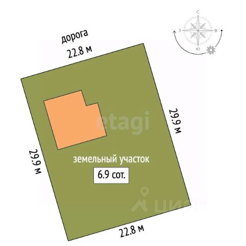 На участке имеются плодовые деревья и кустарники, небольшая зона огорода, теплица, много цветов.