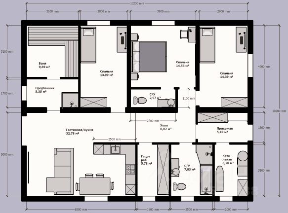 Планировка дома: просторная кухня/столовая, каминный зал, 2 с/у, тёплое подвальное помещение с котельной, кладовой, своим с/у, 3 спальни, дополнительные спальные места в мансарде, бильярдная.