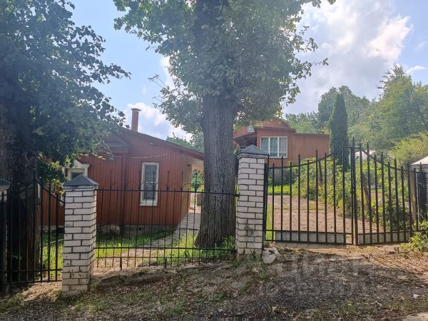На участке высажены туи рядом с входом в здание и воротами. Участок с двух сторон ограничен высоким бетонным забором, большими металлическими воротами на въезде.