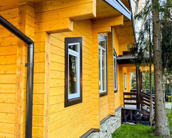 39 км от МКАД, Ленинградское ш., платная трасса М-11, Рогачевское ш., Дмитровский район, деревня Матвейково. В поселке всего 15 домовладений, расположен в лесном массиве (вековые сосны, ели, березы), поселок огорожен по периметру красивым забором, освещаемая въездная группа, автоматические ворота, освещенные дорожки, эл-во на каждом участке по 15 Квт (у каждого свой договор энергоснабжения, абонентская книжка), скважина, септик, интернет оптоволокно, телевидение. В шаговой доступности 900 метров: Гольф клуб Forest Hills, Знаменская церковь 19 века, конюшня, 2 пруда. Также в 150 метрах: футбольное поле, баскетбольная площадка, долина реки Лутосня. Недалеко горнолыжные курорты: Яхрома, Сорочаны, Волен и пр. Подьезд асфальт. Вокруг лес, тишина, грибы, ягоды, рыбалка. Экологически чистое место. Все участки с высокими лесными деревьями. Новый коттедж из клееного бруса в стиле Шале, расположенный на участке 7 соток, с возможностью расширения. Общая площадь 135 кв.м., панорамное остекление, второй свет, крыша-финская мягкая черепица, окна BrusBox, толщина стеклопакета-70 мм, 3-х камерный, фурнитура Rotо, монолитный бетонный фундамент. Планировка 1 этаж: крыльцо, прихожая, гардеробная, топочная, 2 санузла, холл, кухня-гостиная с панорамными окнами и выходом на крытую веранду, 3 спальни. Время в пути от Москвы до поселка 35-40 минут. АКЦИЯ!!!