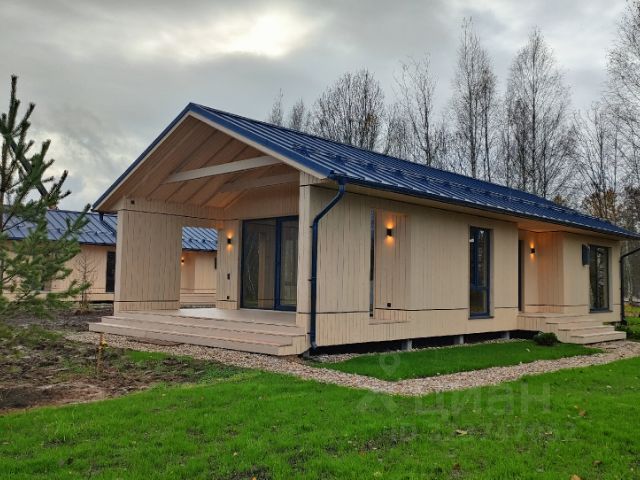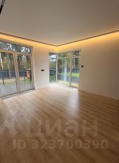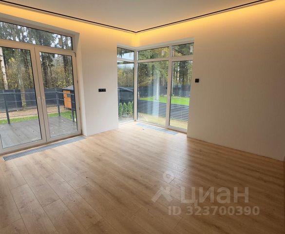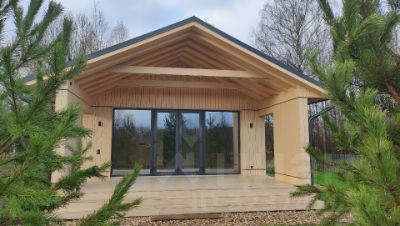 Уютный фахверк для постоянного проживания в скандинавском стиле с большим панорамным остеклением на лесном благоустроенном участке 20 соток в 50 км от МКАД по Новорижскому шоссе (30 минут в пути) в коттеджном поселке Новолеоново.