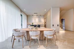 1 этаж, 254 кв.м: гостиная 57,2, столовая 28,5, мини-кухня 7,8, холл 28,2, холодильник 4,7, кухня 35,1, кабинет 22,8, коридор 2,3, санузел 10,1, постирочная 10,6, прихожая 11,5, крыльцо 7,6 и терраса 27,6 кв.м .