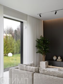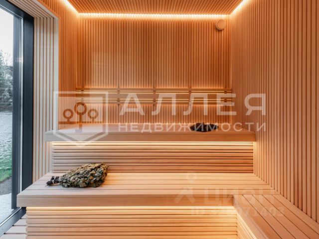 Цокольный этаж, 257,1 кв.м: холл 17,7; гардеробная 28; библиотека 56,8; технические помещения 29,9 и 7,2; помещение с джакузи 61,9; винотеки 14,1 и 9,6; сауна 11,3; душевая 1,8; санузел 3,8; хаммам 10,1 и парогенератор 4,9 кв.м.