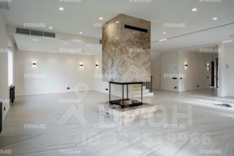 В просторной гостиной установлен стильный дровяной камин, а впечатляющая высота потолка в 6 метров с эффектом второго света придаёт дополнительную элегантность этому пространству. В отделке гостиной использованы натуральные оникс и мрамор.