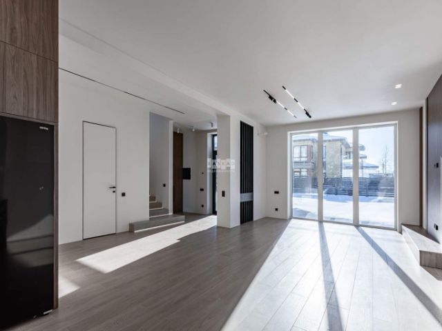 В доме: 4 спальни со своими ванными комнатами и гардеробными (одна из них - на первом этаже), просторная гостиная с камином, панорамным остеклением и выходом на летнюю веранду, большая и светлая кухня-столовая с кладовой для хранения продуктов и установки дополнительного холодильного оборудования, парадный холл с гардеробной, постирочная на втором этаже, гараж на 2 м/м в контуре дома.