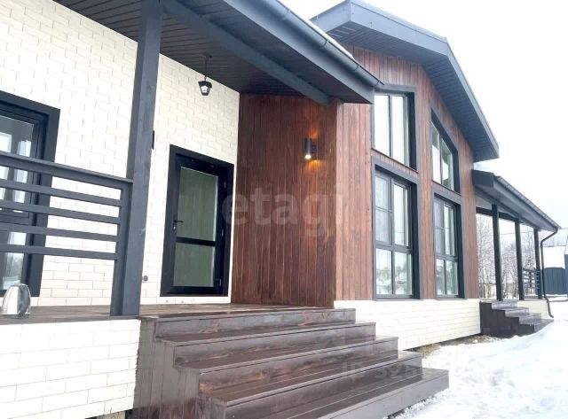 Уютный фахверк для постоянного проживания в скандинавском стиле с большим панорамным остеклением на лесном благоустроенном участке 20 соток в 50 км от МКАД по Новорижскому шоссе (30 минут в пути) в коттеджном поселке Новолеоново.