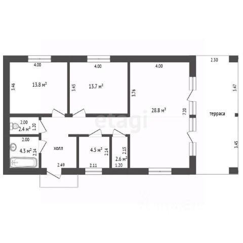 Номер в базе: 9565689. Продается новый дом в стиле барнхаус на участке 10,35 соток в Истринском районе МО в д. Чаново Статус участка: ИЖС (индивидуальное жилищное строительство) О доме Площадь: 101,1 м², одноэтажный Материал стен: газобетон, толщина 40 см Планировка: жилая площадь 75 м2, 2 спальни (12,2 м2 каждая), кухня-гостиная (27,3 м2), 2 санузла, котельная, кладовка, терраса (16,7 м2) Электричество: 15 кВт Водоснабжение: колодец, возможность обустройства скважины Канализация: септик БАРС-Ультра 5 Характеристики дома: Фундамент: монолитная плита 25 см, с утеплением Стены: газобетон Leitberg, толщина стен 40 см Окна ПВХ KALEVA, панорамные окна с выходом на террасу Внешняя отделка крыши и стен: фальц Stynergy (оцинкованный метал) Высота потолков в коньке 4,2 м Терраса: отделка стен планкен из лиственницы сорт АВ с покрытием маслом PNZ, пол террасная доска ДПК 3D Транспорт и инфраструктура Доступность: 45 минут до Москвы по Новорижскому шоссе Инфраструктура: магазины (в 5 км), школа, детский сад, медицинские учреждения в радиусе 15 км Адрес: Российская Федерация, Московская область, городской округ Истра, деревня Чаново, дом 78 Оперативный показ и выход на сделку, помошь в одобрение ипотеки! Код пользователя: 120365