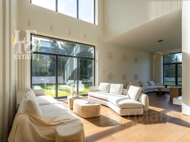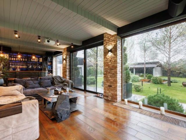 Ощущение пространства в доме обеспечивают большие панорамные окна и высокие потолки в комнатах (от 3,5 до 7,2 метров), а также великолепные виды на все стороны света.