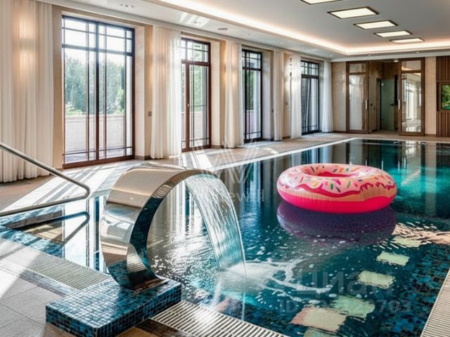 В доме: 5 спален, 2 кухни с профессиональной мебелью, кабинет, гараж на 4 м/м, блок персонала, спа-зона, профессиональная винная комната и роскошная терраса.