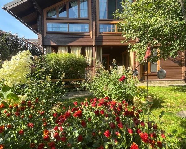 Ухоженный участок 8.55 соток ровный, правильной формы, уложен качественный рулонный газон, выложена тротуарной плиткой парковка у дома на 2-4 автомобиля, установлены автоматические ворота, участок огорожен забором - металлопрофиль.