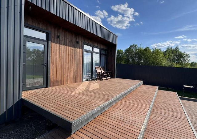 Жилой дом площадью 120 м² расположен на участке 6,1 соток, полностью огорожен забором с индивидуальным въездом и входом. Асфальтированный подъезд к дому. Дом уютный и теплый, построен из экологически чистого пеноблока с высокой тепло- и шумоизоляцией, а также огне- и морозостойкий. Фундамент — монолитная плита, крыша выполнена из ондулина, снаружи обшита сайдингом, внутри — имитация бруса.