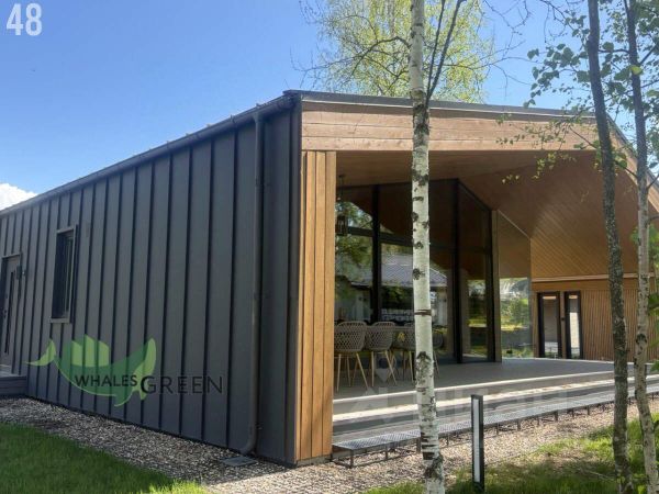 Дом выполнен по уникальному проекту "Луна", в современном стиле, сочетающем в себе актуальную архитектуру и комфортную концепцию для загородной жизни.