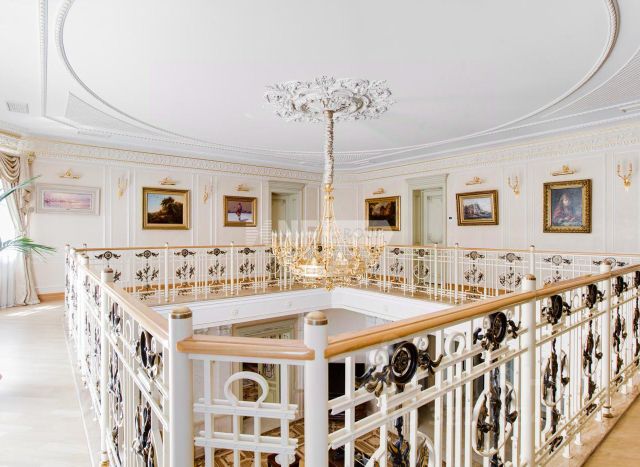 Основной дом: 3 этажа, площадь 779,2 м², 6 спален с санузлами, стеклянный лифт, гостиная с камином и баром, большой холл, кухня и столовая, зал с уникальным столом из массива дерева на 14 персон и камином. Все помещения оборудованы системами кондиционирования, установлена приточно вытяжная вентиляция c функцией обогрева воздуха фирмы YORK.