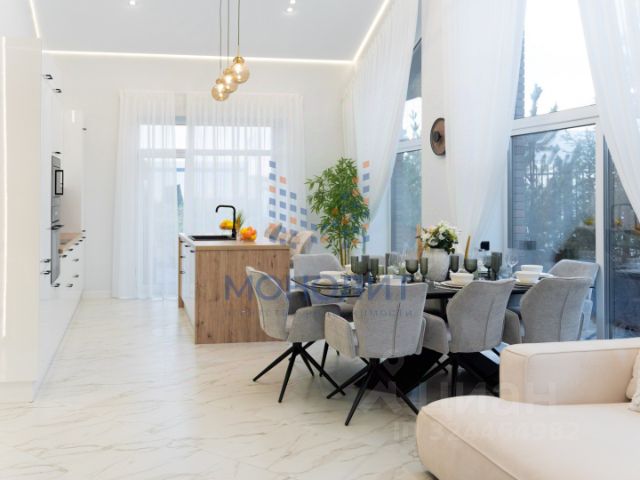 Стильный новый дом под ключ! 333 кв.м в духе архитектуры хай-тек в коттеджном поселке премиум класса Райт Вилладж. Дом с несущим монолитным каркасом, заполненным кирпичом, панорамным остеклением, высокими потолками готов к заселению: отделан элитными материалами, обставлен европейской мебелью. Функциональная планировка включает в себя: единое пространство кухня-столовая-гостиная, 5 спален, одна из которых на 1-м этаже, 5 санузлов, террасы. Установлен биокамин, сделано качественное трековое и встроенное освещение. Участок 16 соток с ландшафтным дизайном, плодовыми и декоративными деревьями, большой солнечной поляной. Элитный коттеджный посёлок, выстроенный в едином стиле, со всеми центральными коммуникациями, строгой охраной, инфраструктурой городского типа и великолепными природными пейзажами. В поселке открыт ресторан ПРЕРИЯ, супермаркет, аптека, есть прогулочные зоны с водоемом и фонтанами, спортивные площадки, в ближайшее время будет открыт детский сад Stay and Play. В поселке началось строительство большого спортивного комплекса (фитнес клуб с бассейном, площадки для футбола/баскетбола, пляжного волейбола, катка)