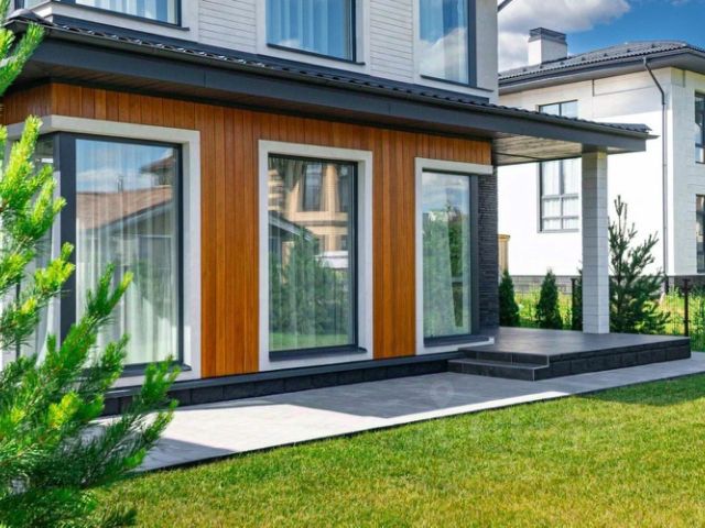 Преимущества: натуральное дерево в отделке, панорамные окна, спа-зона с сауной, модный интерьер, стильное решение - разделение ванной и спальни стеклянной перегородкой, дизайнерская напольная раковина в гостевом с/у, кухня с шикарным островом, по всему дому теплый пол, дизайнерские картины и скульптуры (в том числе - на участке, в человеческий рост), на террасе уличная мебель, в ванных комнатах брендированные банные принадлежности (полотенца, тапочки, халаты), подогреваемый чан на улице.