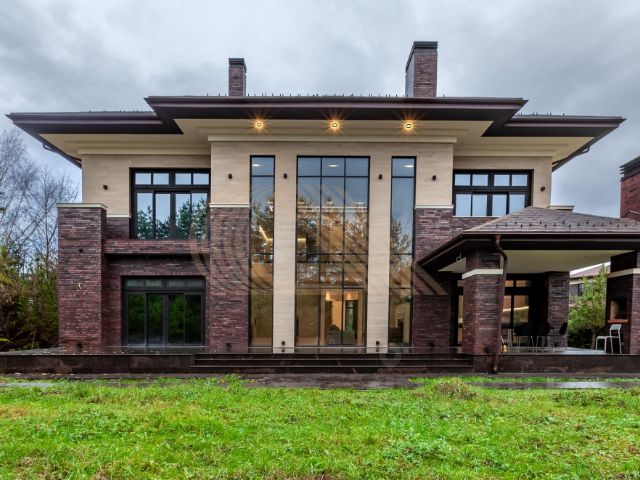 Арт. 131304350 Продажа дома в деревне Красновидово Общая информация Местоположение: д. Красновидово (Новорижское шоссе). Площадь участка: 20 соток (фактически — 25 соток). Статус: один собственник, в собственности более 10 лет. Готовность к показу: по договорённости. Описание дома Кирпичный особняк в классическом стиле: отделка снаружи — штукатурка; кровля — мягкая черепица; окна — Rehau. Планировка 1й этаж: закрытое крыльцо; холл; гардеробная; гостинаякухнястоловая; кабинет; санузел; техническая комната; котельная; терраса; помещение для обслуживающего персонала; гараж. 2й этаж: хозяйская зона: спальня, ванная комната, балкон; холл; 2 спальни; санузел; балкон. Цокольный этаж: бильярдная с баром; хозяйственные помещения; бойлерная; санузел. Отделка и оснащение полы на 1м этаже — итальянская плитка с подогревом; полы на 2м этаже — дубовая половая доска; высокие потолки; панорамные окна; цветные витражи; камин в гостиной. Гостевой дом и хозяйственные постройки 2этажный бревенчатый гостевой домбаня: большая терраса; комната отдыха; парилка; купель; душевая; санузел; котельная; на 2м этаже: 3 спальни, большой балкон. гараж; помещения для обслуживающего персонала. Инженерные системы электричество: 15 кВт; магистральный газ; водоснабжение: скважина + система водоочистки; канализация: септик; генератор; интернет; система полива. Участок и благоустройство обилие декоративных, лесных и садовых деревьев, кустарников, цветников; небольшой прудик с водопадом; газон с дорожками и фонариками; навес на 2 машины; второй въезд на участок; огородик; 2 теплицы. Инфраструктура Вблизи: детская оборудованная площадка; супермаркет; школы; детские сады; поликлиники; прочая инфраструктура Новорижского шоссе.