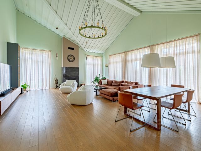 Дом полностью готов для постоянного проживания, есть вся необходимая встроенная техника и мебель. Внутренняя отделка выполнена в светлых тонах, а большие панорамные окна добавляют пространства и света помещениям. В гостиной установлен камин для создания атмосферы в доме, объединяя семью вокруг своего живого света и прекращая дом в настоящий очаг.