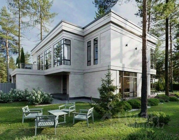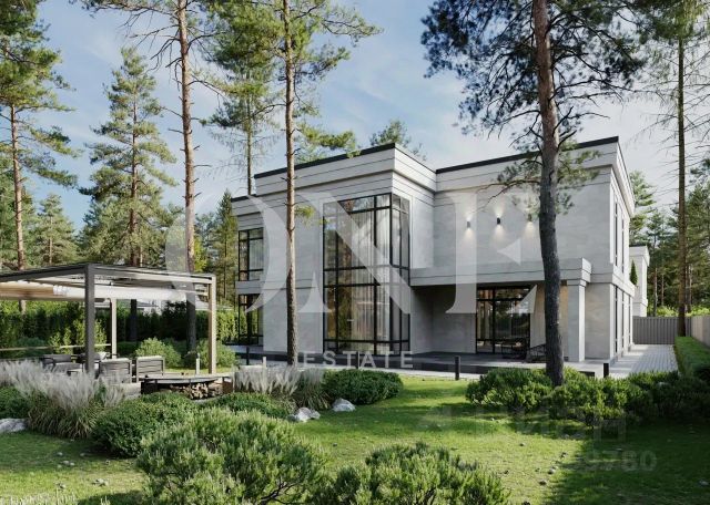 ID 7359. Современный особняк , общей площадью 520 м2, включая террасу 80 м2 с подогреваемым покрытием в черновой отделке. Дом расположен на благоустроенном и огороженном забором лесном участке площадью 13 соток, в окружении корабельных сосен. Реализован ландшафтный дизайн, уложен газон премиум качества, высажены новогодняя ель, сосны, туи. Сделан дренаж, выполнено мощение территории. Планировочное решение является продуманным и функциональным. Этаж 1: просторная и светлая зона кухни-столовой с отдельной кладовой комнатой для хранения продуктов, гостиная 100 м2 с зоной второго света, остеклённым потолком (высота потолка в коньке - 7м), немецким камином и с выходом на террасу, гостевая спальня с гардеробной, санузел, котельная, гардеробная. Этаж 2: 2 детские спальни с панорамным остеклением, с одной из которых предусмотрен выход на террасу, санузел, постирочная комната, а так же третья, просторная мастер-спальня, с гардеробной комнатой, панорамным остеклением и живописным видом.