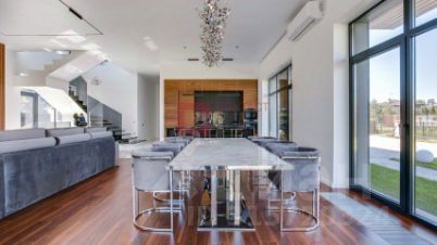 Дом 976 кв.м приватно расположен на ухоженном и утопающем в зелени участке 47 соток, примыкающем к парковой территории элитного коттеджного поселка Монтевиль в 23 км от МКАД по Новорижскому шоссе.