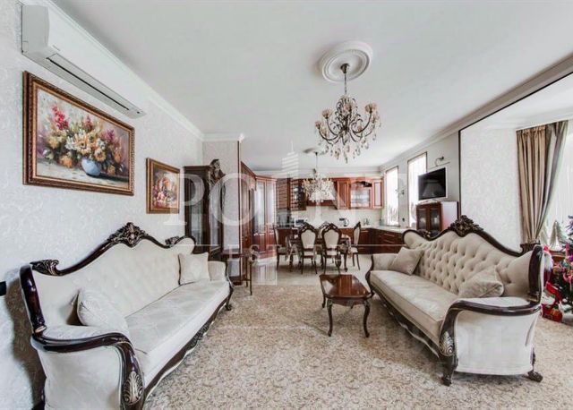 Диваны и кресла в гостиной Duresta (Англия). В столовой каменный раздвижной стол Draenert (Бельгия). В спальнях кровати Treca (Франция), диваны Meridiani. Гардеробы Rimadesio и Bernazzoli (Италия).