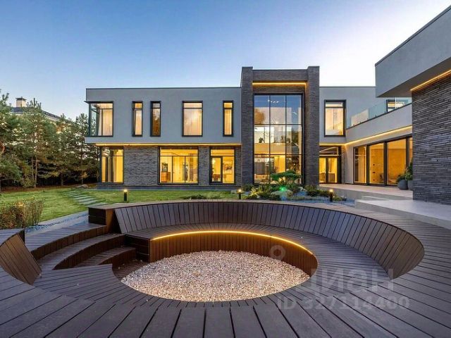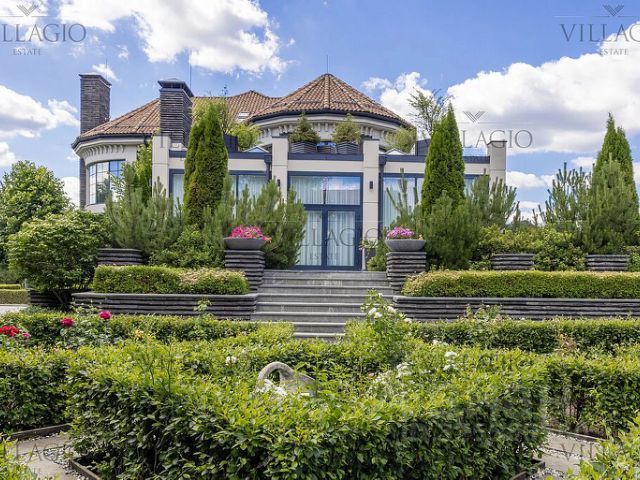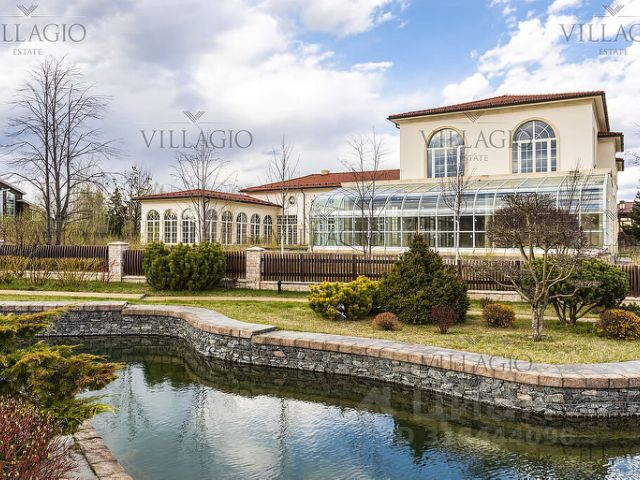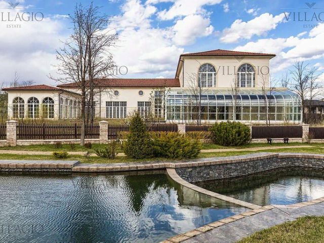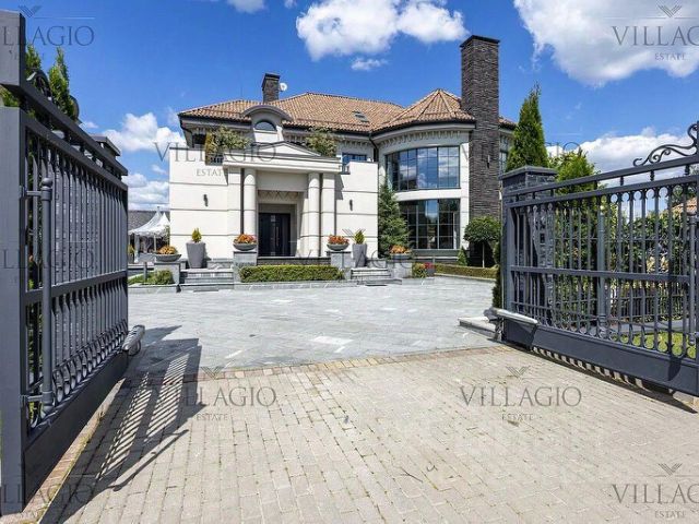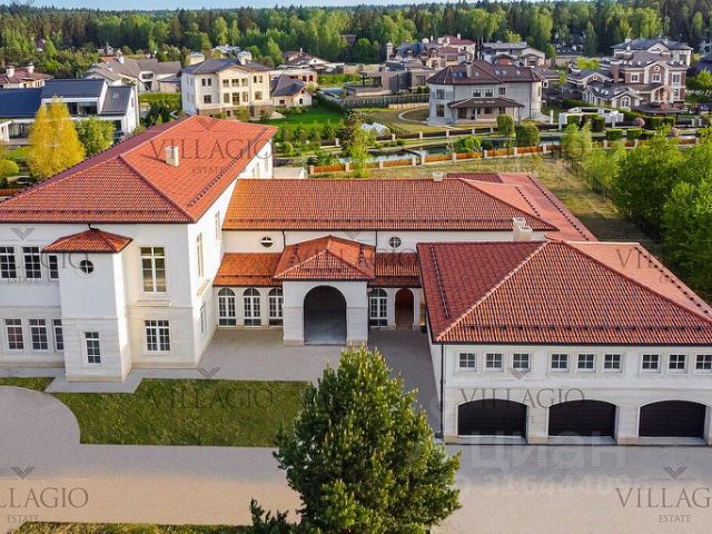 В доме: 4 спальни с ванными и гардеробными, гостиная-столовая, кухня, хобби-комната 50 кв.м, двухуровневая спа-зона с хаммамом, сауной и джакузи, гараж на 2 м/м с зарядкой для электроавтомобиля и помещением для водителя, котельная, отдельный блок персонала с профессиональной кухней в цоколе.