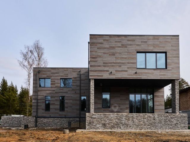 Наружная часть стен-фасад здания выполнен из фактурной отделочной штукатурки с эффектом "Короед". В основании дома свайно-ростверковый фундамент. Крыша из металлочерепицы. Под крышей и под домом можно организовать систему хранения для сезонных вещей.