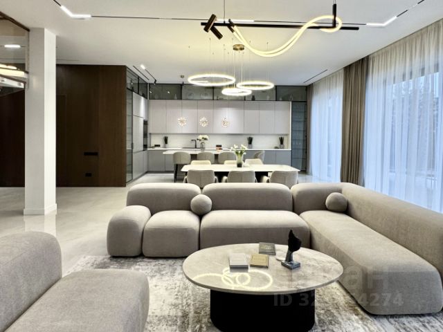 Особенности: продуманная планировка, светлый интерьер с элементами ар-деко, высокие потолки, живописные виды из окон, итальянская и испанская мебель, приточно-вытяжная вентиляция, теплые полы, дизайнерские радиаторы Arbonia, премиальная бытовая техника (холодильник Liebherr, плита De Dietrich), французский камин в гостиной, дровяная печь на веранде, зеленый участок с ландшафтным дизайном и плодовыми деревьями.