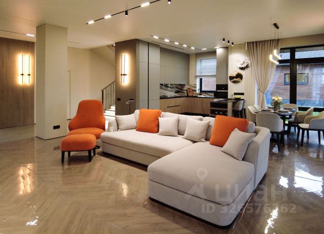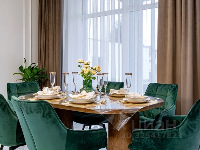 Особенности: продуманная планировка, светлый интерьер с элементами ар-деко, высокие потолки, живописные виды из окон, итальянская и испанская мебель, приточно-вытяжная вентиляция, теплые полы, дизайнерские радиаторы Arbonia, премиальная бытовая техника (холодильник Liebherr, плита De Dietrich), французский камин в гостиной, дровяная печь на веранде, зеленый участок с ландшафтным дизайном и плодовыми деревьями.