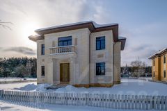 Коттедж строился для себя, качественный конструктив, на фасаде крупноформатный кирпич Rauf 570мм, вентзазор, клинкер отделочный.