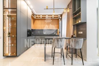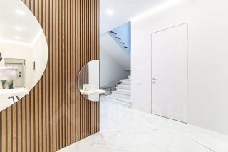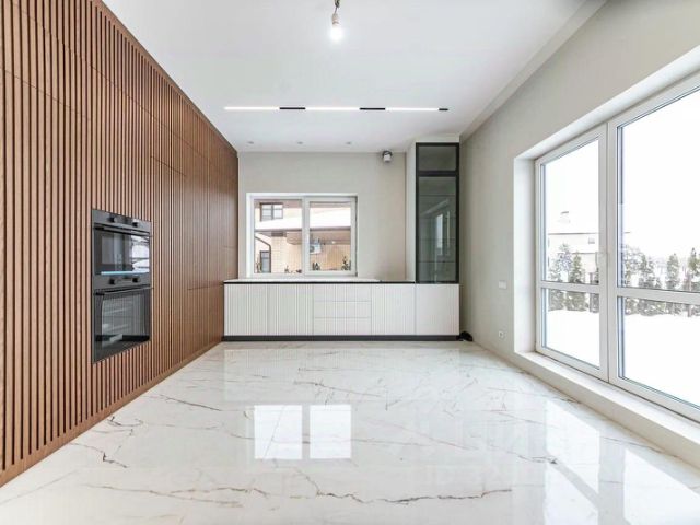 Особенности: продуманная планировка, светлый интерьер с элементами ар-деко, высокие потолки, живописные виды из окон, итальянская и испанская мебель, приточно-вытяжная вентиляция, теплые полы, дизайнерские радиаторы Arbonia, премиальная бытовая техника (холодильник Liebherr, плита De Dietrich), французский камин в гостиной, дровяная печь на веранде, зеленый участок с ландшафтным дизайном и плодовыми деревьями.