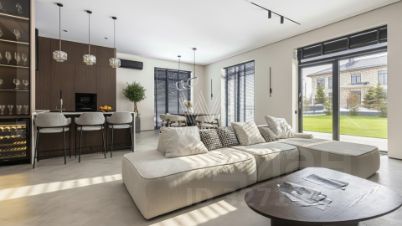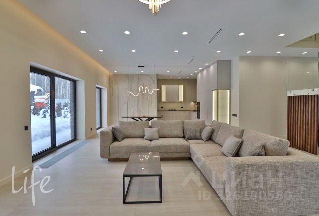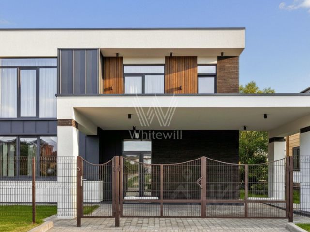 Лот: 9921657. Дом с мебелью 310 кв.м на участке 6 cот. Кол-во спален: 5. Кол-во с/у: 5. Поселок "Новорижский". Новорижское шоссе, 23 км от МКАД. Без комиссии для покупателя. Новый, стильный и современный дом в КП Новорижский! Расположен в центральной части посёлка. Дом с качественной отделкой. Удобная планировка: кухня- гостиная, 5 спален каждая с санузлом и гардеробной, терраса, навес на два автомобиля. В доме окна в пол, высокие потолки. Много естественного света. Собственная финская сауна. Укомплектован мебелью и техникой. Можно заезжать и жить. 1 этаж: Прихожая, гардеробная, просторная зона в районе лестницы с дополнительно оборудованными шкафами, гостевой с/у, сауна, просторная котельная-постирочная, спальня или комната свободного назначения, кухня, гостиная с камином; 2 этаж : Мастер-спальня с просторным гардеробом, с/у и кабинетом, 3 детские спальни со своими гардеробными и с/у. Участок ровный, брусчатка спереди и газон во дворе. Коттеджный поселок "Новорижский" удачно сочетает в себе оптимальную транспортную доступность и относительную близость к Москве. Умеренная отдаленность от столицы, уединение и тишина создают жителям коттеджного поселка личное пространство, в котором нет места городскому шуму и стрессам.