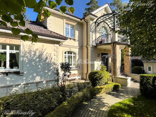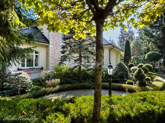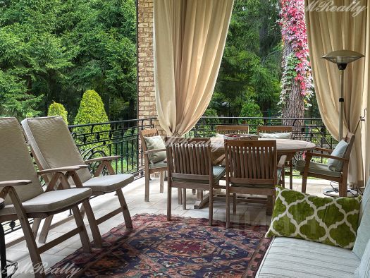 Просторный участок площадью 44 сотки. Дорожки и въездная группа выложены брусчаткой из гранита. По периметру территории высажены взрослые хвойные и лиственные деревья и кустарники. Организована система автополива.