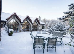 Особенности: высокие потолки, большая площадь остекления, камин с отделкой мрамором в гостиной, на полу штучный паркет, дровяная печь на малой кухне, светлый интерьер в классическом стиле, водяные теплые полы, уютный зеленый участок с ландшафтным дизайном.