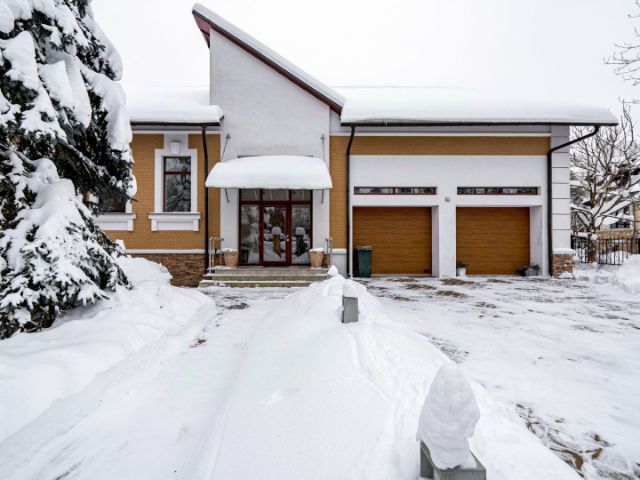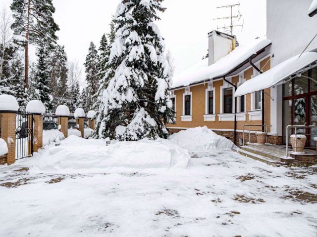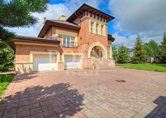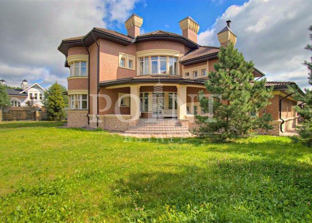 На лесном участке 55 соток с ландшафтным обустройством, на котором растут вековые сосны, расположена загородная усадьба площадью 1500 метров.