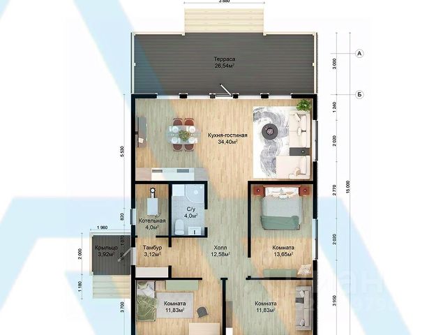 1 этаж прихожая 29,1м2, с/у, гостиная 54,8м2, кухня-столовая 27,7м2, спальня 19,8м2, комната 21,9м2, постирочная, погреб 12м2.