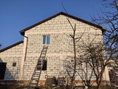 Внешний фасад дома оштукатурен, подготовлен к покраске, в наличие есть гранит на отделку цоколя.
