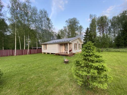 1. Новый одноэтажный жилой дом для круглогодичного проживания с летней верандой с красивым видом на лес, общей площадью 140 кв.м., 2024 года постройки, материал стен - брус, свайно-винтовой фундамент с отмосткой, крыша - мягкая кровля ондулин, наружная отделка - сайдинг.