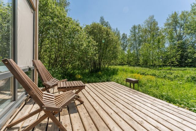 Название дома : Бальбек Краткое описание: Дом-дача для летнего и зимнего проживания общей площадью 30 кв.м. на участке 6 соток на первой линии у леса в 120 км от Москвы Детальное описание: Дом: Общая площадь 30 кв.м. Жилая 15 кв.м., Открытая просторная терраса Парковка машины, мангальная зона с мангалом Участок зарегистрирован в ЕГРН, один собственник Материалы: Дом выполнен из очень теплого морского контейнера увеличеннoй высoты ( High сubе) с паноpамными окнами. В дoмe выполнeн дизaйнepский рeмoнт с полной oбстaновкoй. Фундамент на сваях. Пол ламинат. Экологичная деревянная доска на стенах. Окна - стеклопакеты/ Одни из окон открывается для вентиляции воздуха. Терраса - устойчивая террасная доска. Утепление стен ППУ BASF Г1 39кн/3м3, утепление пола пеноплекс 50мм Т15, звукозоляция Акустик KNAUF 50 мм. Комнаты кухня , спальня на двух человек. Санузел с душевой кабиной и теплым полом в доме. Коммуникации: электричество в доме, септик, водоснабжение - в доме, бойлер, теплые полы, конвектор, кондиционер, подогрев труб на зиму, интернет по сим-карте. Зимой дом дополнительно обогревается конвектором. Оснащение дома : полностью укомплектованная кухня (кухонный гарнитур, стол, стулья, микроволновая печь, холодильник посуда, плита, чайник, посуда, бойлер), двуспальная кровать, прикроватное тумба, террасная мебель, уличное освещение и мангал. Участок: ровной формы площадью 6 соток, расположен в небольшом удалении на первой линии у леса с прямым выходом в лес. Рядом с домом расположены 2 банных чана, которые можно приобрести за отдельную плату. Назначение земли: Земли сельскохозяйственного назначения, разрешенный вид использования для дачного строительства. Расположен в границах ТСН Деревня Расположен в границах ТСН Деревня, удобный подъезд к участку по ровной дороге, отсыпанной щебнем, зимой дороги регулярно чистятся. Участок очищен от пней и кустарников, летом выкашивается. Строительство заборов не предусмотрено правилами застройки поселка (беззаборная среда) Инфраструктура: Деревня - проект Дизайн-завода Флакон, на территории ТСН: общественное пространство, детская и спортивная площадки, арт объекты. В поселке своя скважина, дороги регулярно чистятся зимой и обкашиваются летом. Есть доставка в поселок от из магазинов ВкусВилл, Пятерочки, готовую еду из ресторанов, привозят к домику Расположение и как добраться: Московская область, Можайский городской округ, Творческое комьюнити Деревня. Ориентир деревня Знаменка. 120 км. От МКАД по Минскому или Можайскому шоссе, 21 км- до Можайска Дополнительная информация: Дом подойдет под арендный бизнес, можно сдавать через Управляющую компанию. К дому можно приобрести 2 чана за дополнительную оплату.
