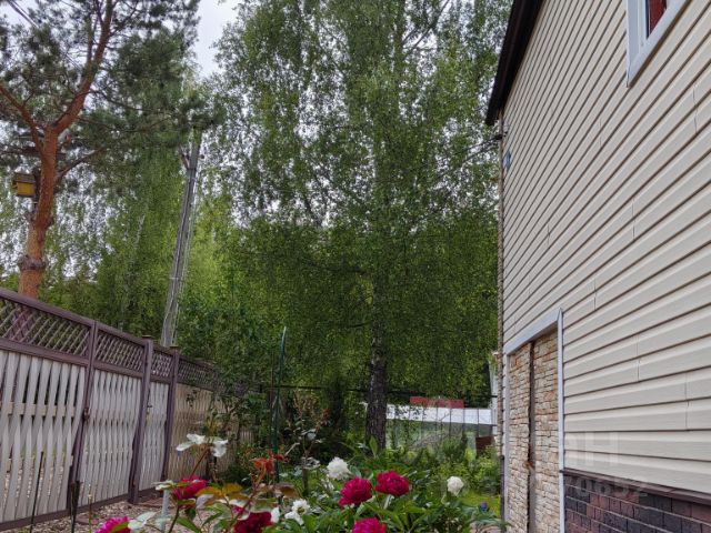 На участке лесные и садовые деревья, кустарники, газон, дорожки, стоянка, участок огорожен.
