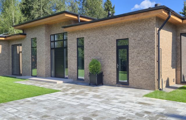 Уникальные интерьеры подчеркивают благородные материалы: теплые тона натурального дерева оконных рам по всему дому создают особую атмосферу, а высота потолков от 3,5 до внушительных 4,5 метров наполняет пространство светом и воздухом. Центрами притяжения и уюта станут два дровяных камина: один из них истинное произведение искусства, изысканно отделан и украшен полупрозрачным ониксом.