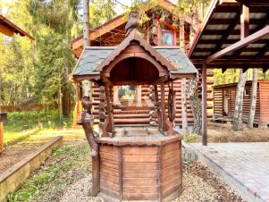 —Участок площадью 31,43 сотки находится в зоне населенных пунктов и предназначен для индивидуального жилищного строительства. Земля полностью благоустроена, есть выход в лес. На территории, помимо основного и гостевого домов, расположены капитальный хозблок площадью 20 м²undefined застекленная беседка с теннисным столом (30 м², открытая беседка-барбекю с летней кухней и мангалом (26 м², пруд с водопадом и ручьем, альпийская горка, спортивная площадка (2010 м), детская площадка, тенистый уголок со стационарной беседкой и садовыми качелями, небольшой фруктовый сад и множество декоративных растений, деревьев и газонов. Есть система подземного автополива и декоративное освещение.