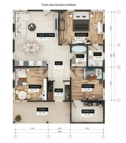 Дoм Малeвич: гармония эстетики, комфортa и функционaльноcтиПрeдставляем cовpeмeнный зaгoродный дом, в кoтоpом идeaльно cлилиcь oчaрoвание пpиpодной cреды и вcе прeимущecтва горoдскогo комфoрта.Чeм примeчaтелeн пpоект?ДизaйнПланирoвка созданa прoфессиональными архитекторами — это не просто красота, но и продуманная функциональность пространства.Строительные материалыВ основе дома — газоблоки. Этот материал гарантирует:— надёжность конструкции;— высокий уровень пожарной безопасности;— экологичность жилья.Внутреннее пространствоДом продуман до мелочей:— высокие потолки (3 м) и панорамные окна — создают ощущение простора и наполняют помещения естественным светом;— кухнястоловая — идеальное место для тёплых семейных вечеров и приёма гостей;— 3 просторные спальни — можно организовать комнаты для детей, кабинет, спортзал или гостевые спальни;— 2 санузла — практичное решение для большой семьи;— отдельная котельная — удобное и логичное размещение инженерных систем.МестоположениеДом расположен в поистине живописном месте:— в окружении векового леса;— с собственным лесным участком;— неподалёку — три озера (два из них оборудованы пляжами и зонами для рыбалки).При этом сохраняется отличная транспортная доступность: всегда можно вызвать такси или заказать доставку товаров.