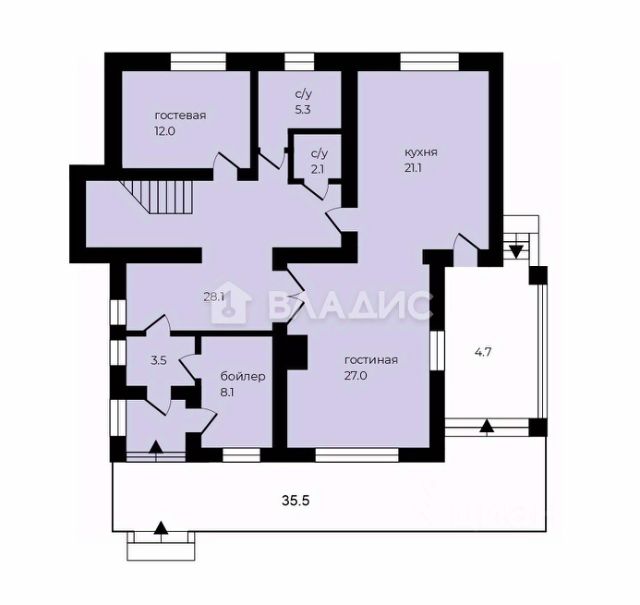 Второй этаж: 3 спальни , холл , ванная комната , балкон. Просторные комнаты ! Отопление, электрика, водоснабжение, вентиляция-проведены!
