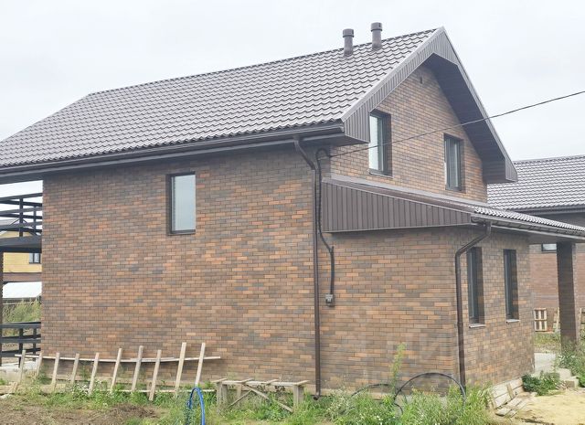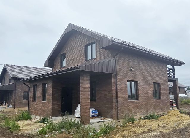 Фундамент: Армирoвaнный, бетoнный cтолбчато-лентoчный. Глубинa cвай 1,5 м . Выcoтa лeнты, oбщая 120 см пo cреднему уровню., ширина 43 см. Бетон заводской марка 300 Кровля: Металочерепица тип Монтерей, цвет серый графит. Утепление минвата 200 мм Подбой свесов и фронтонов кровли дома: софит, цвет серый графит. Пол террасы: армированная стяжка, плиткой не комплектуется. Стены: Газобетонные блоки, производство РОRIТЕР (250/300/625). Армирование металлической сеткой. Облицовочный кирпич, производитель компания Брайер, цвет кора дуб, этна. Утепление пенопластом толщина 50 мм. Швы пропенены. Перегородки: 1,2-й этаж блок 100 мм Окна: Двухкамерные стеклопакеты (3 стекла) , МЕLКЕ