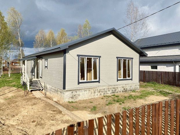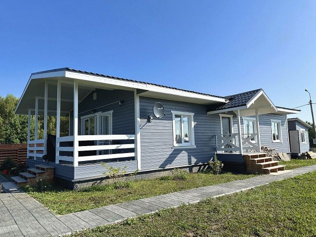 Предложение напрямую от застройщика. Подходит под льготную ипотеку .Отделка под ключ. Одноэтажный комфортный дом в стиле Barnhouse построенный в лучших традициях финских каркасных домов, площадью 96 м2 открытая веранда 24 м2 для круглогодичного проживания в экологически чистом районе Дом площадью 120,4 м2 Кухня-гостиная площадью 32м2. Три комнаты: Первая комната 10,34 м2, вторая 12,23 м2, третья 12,09 м2. Холл 32,55 м2. Фундамент: Бетонные сваи Стены: Каркас, утеплитель из базальтовой ваты Отопление водяное (электрический котел) Санузел 5,7 м2 Окна пятикамерные, профиль 70 мм Кровля металлочерепица, утепление каменная вата. Коммуникации: Вода-скважина. Электричество - 15 кВт Септик Коммуникации: электричество, вода, септик, Бойлер на 80 литров