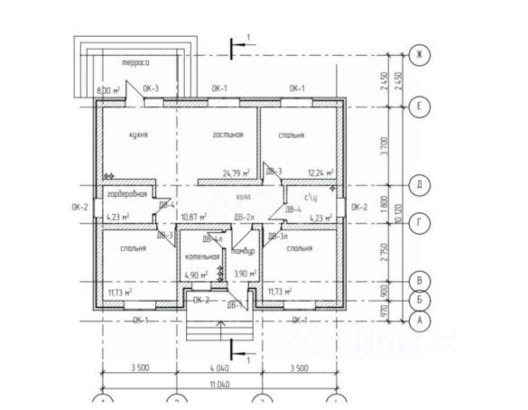 Вход в дом оснащен тамбуром, на первом этаже дома расположена просторная кухня-гостиная 27 кв.м, комната 14 кв. м с отдельным санузлом, две комнаты по 13 кв. м, а также еще один отдельный санузел, техническое помещение, холл. На кухне установлен современный кухонный гарнитур с бытовой техникой .