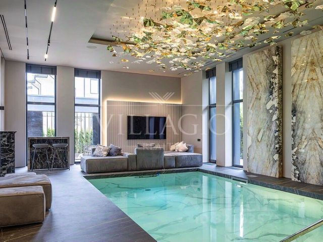 ID-9960 Акция: при покупке дома с Villagio Realty вы получаете год сервиса - абсолютно бесплатно! Мы позаботимся обо всём, чтобы вы просто наслаждались жизнью в своём доме. Элитный двухэтажный особняк площадью 745 м² в закрытом поселке "Ренессанс Парк". Проект дома разработан студией Prosvirin Design. Интерьер и декор продуман до мелочей оформлен с применением премиальных материалов и брендов, подчеркивая изысканный вкус владельцев: Мебель: португальская Frato и итальянская Henge. Сантехника: итальянские бренды CEA и Antonio Lupi. Освещение: люстры и светильники от компании ЦентрСвет и итальянских брендов. Для столешницы кухни, отделки бассейна и санузла выбран благородный кварцит — элитный натуральный камень. Дом оснащен современной бытовой техникой премиум-класса: - 9 телевизоров Samsung, расположенные в каждой комнате дома. - Техника немецкой марки Bosch на кухне и в бытовых зонах. - 3 холодильника Liebherr. Внутреннее пространство помимо общих зон вмещает: 5 спален, 7 гардеробных, 7 с/у: Первый этаж: две спальни с собственными санузлами и гардеробными, гостиная с камином, кухня, столовая, бассейн, хамам и зона отдыха. Гараж на два авто и дополнительная парковка под навесом. Второй этаж: мастер-спальня с гостиной зоной, санузлом и гардеробной, спальня с санузлом и гардеробной, кабинет. Отдельной вход на второй этаж в гостевой блок/либо блок для персонала, включающий кухню-столовую, спальню, санузел и гардеробную. Эффективную работу всех системы и поддерживание комфортных условий обеспечивает продуманная инженерия: - Отопление разведено трубопроводами из сшитого полиэтилена, установлены котлы Viessmann, конвекторы Vitron, стальные дизайнерские радиаторы Whsteel. Индивидуальная настройка температуры полов и радиаторов позволяет поддерживать оптимальную температуру в каждом помещении индивидуально. - Встроенная система кондиционирования с кондиционерами Samsung обеспечивает комфортный микроклимат. - Система водоподготовки представлена американскими клапанами Clack. В дом вода подается централизованно от посёлка, а собственная артезианская скважина настроена на подачу воды в бассейн и автополив. Спа-зона с бассейном и хамамом - идеальное пространство для релаксации и восстановления сил! - Размер бассейна: 3,6 х 8 м, глубина - от 1,6 до 2,1 м. - Система двухструйного регулируемого противотока Aquamaster, зона гидромассажа с шестью форсунками с функцией аэромассажа. - Оборудование: премиального класса от ведущих производителей Европы - Система очистки: инновационная французская станция обеззараживания воды Syclop Tach Aktro с использованием ультрафиолета. Обустроенный участок площадью 22,23 сотки предлагает зоны отдыха и развлечения: - Два навеса: один для уличной кухни, второй для парковки автомобилей. - Уличная кухня оснащена качественной техникой Bosch и грилем Napoleon, позволяя наслаждаться приготовлением пищи на свежем воздухе. - Архитектурные элементы пергол и аркад придают участку эстетический шарм. Renaissance Park — элитный коттеджный поселок Villagio Estate, всего в 19 км от МКАД по Новой Риге. Это ближайший к Москве проект компании и один из самых престижных загородных адресов. Территория поселка занимает 130 га и включает 320 домовладений. Архитектура вдохновлена эпохой Возрождения: величественные особняки, парадная колоннада на въезде, ухоженные бульвары и парки создают атмосферу европейской аристократии.
