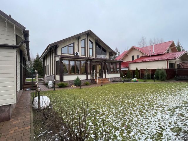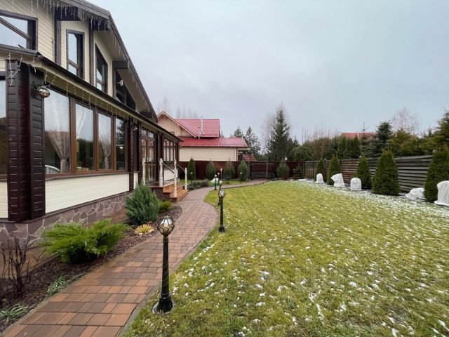 Дом поднят на 2 венца относительно стандартного проекта на каждом этаже дополнительная полезная высота. Крытая терраса. Крыша дома цементно-песчаная черепица Braas. Утепление крыши (пирог) 260 мм. На доме установлена система молниезащиты. Ливневая канализация, дренаж вокруг дома, бетонная отмостка по периметру дома покрыта деревянным покрытием, лиственница. Все окна и внешние двери в доме лиственница, двуцветные. Полы деревянные натуральные, сосна, обработка цветным маслом. Толщина пирога полов с утеплением 260 мм.