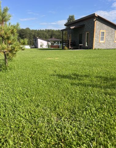 Участок: 11 соток. Газон, плодовые деревья (яблоня, груша, слива), ягодные кусты, место под грядки, детская площадка, батут, парковка на 3 машины, 2 хозблока.