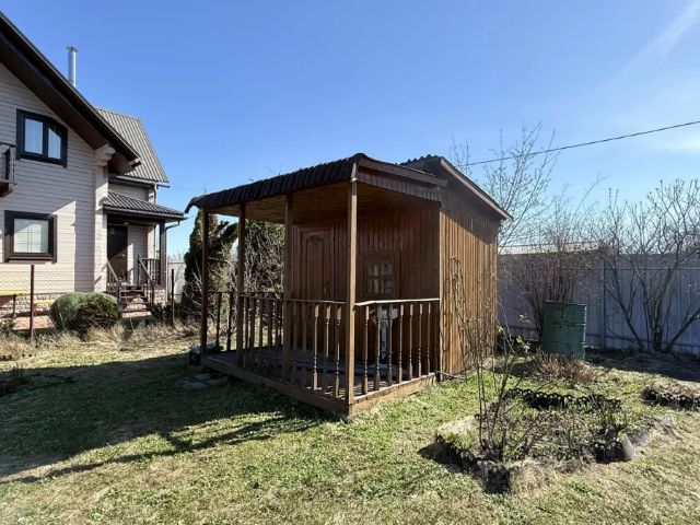На участке 2-х этажная (2-й мансардный) щитовая утепленная дача, 1987 г.п., общей площадью 46,7 кв.м., на хорошем свайно-ленточном бетонном фундаменте, внутри вагонкой, кровля шифер. В даче на 1-м этаже: терраса, большой зал, совмещенный с кухней с печкой-буржуйкой; на 2-м этаже (мансарде): 1 комната.